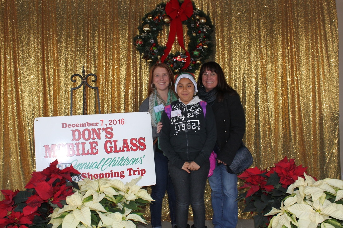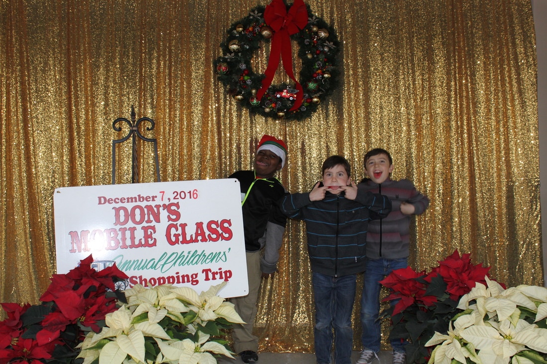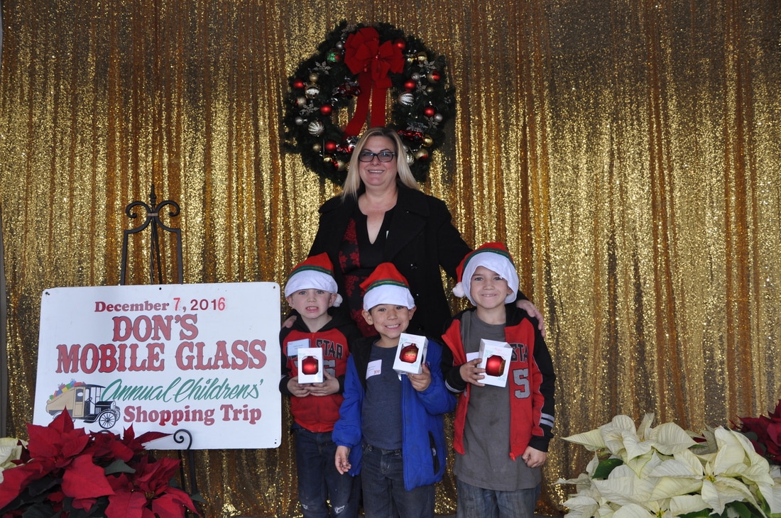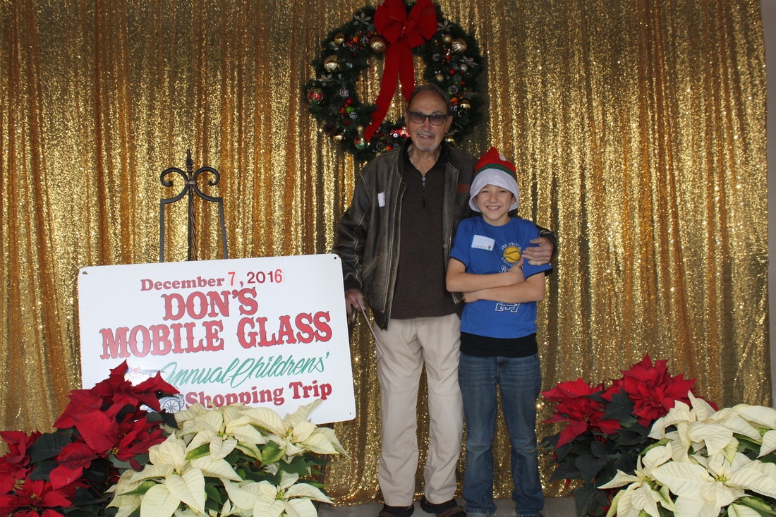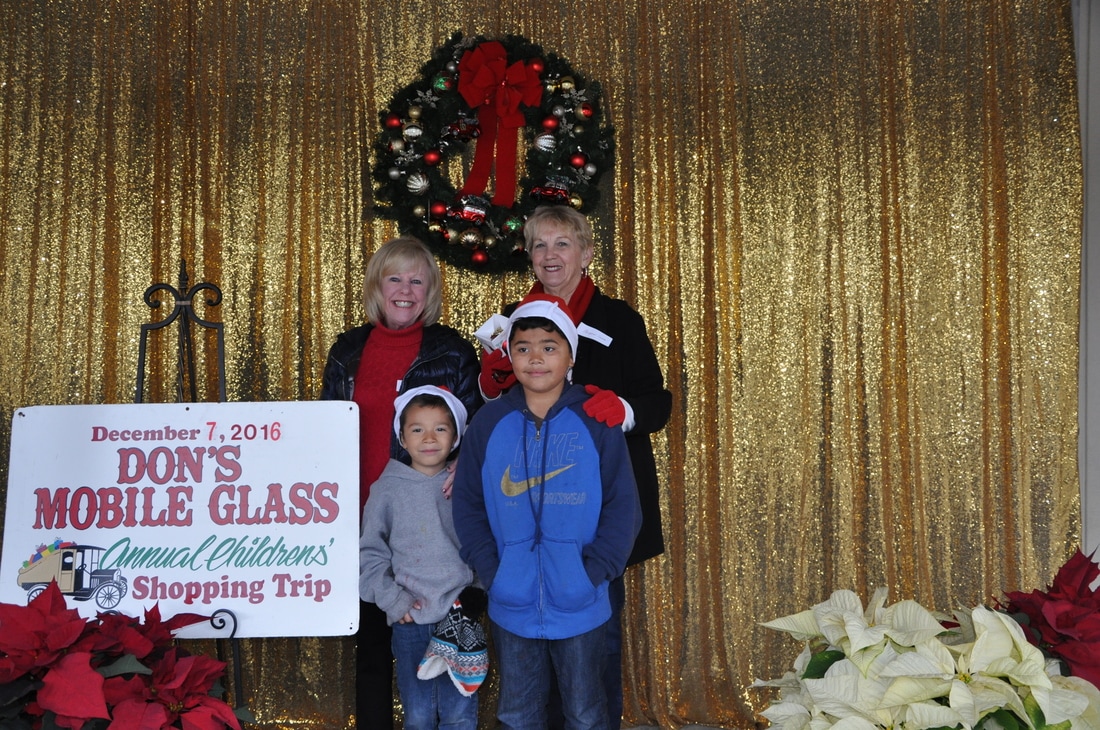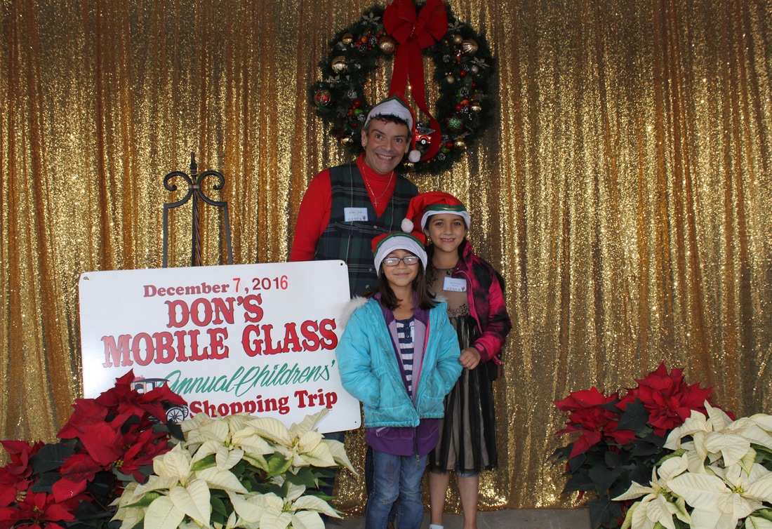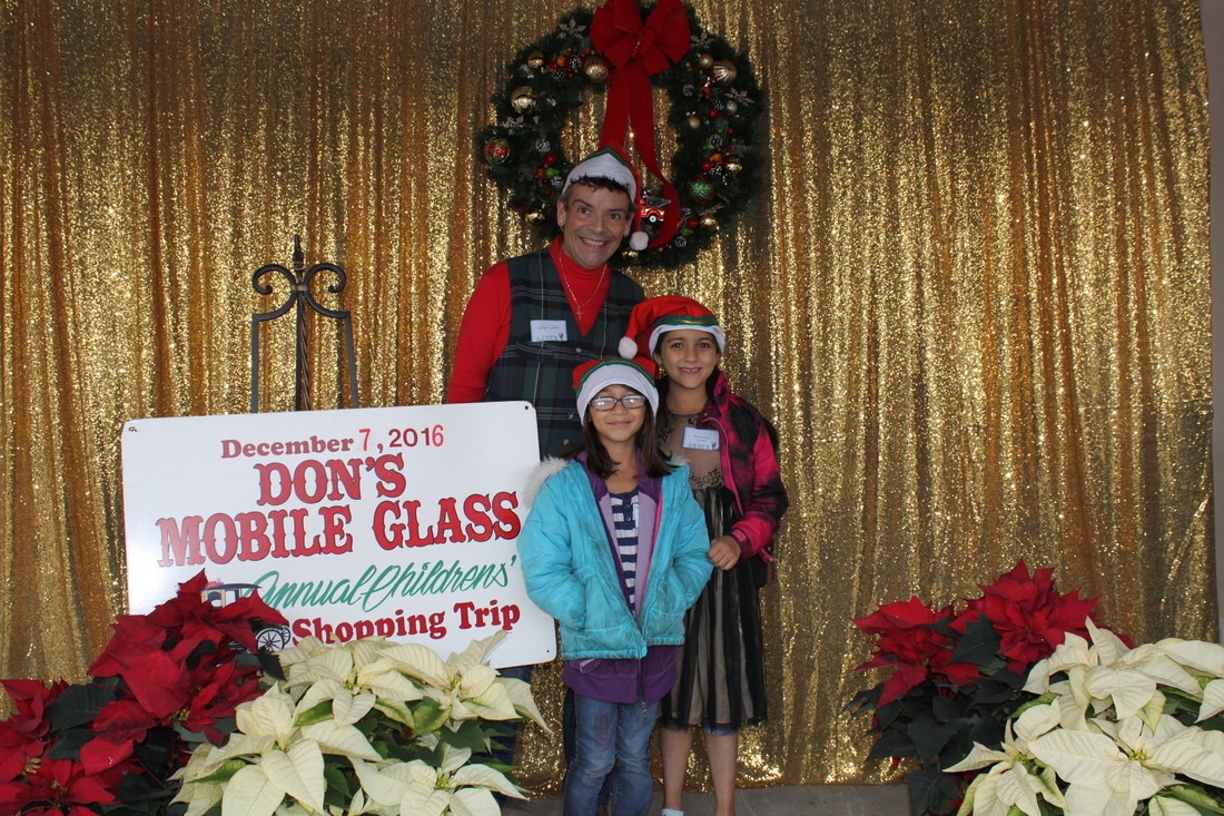 Fast forward a few decades and Thousands of kids have participated in the shopping tour. Don's "elves" at Don's Mobile Glass, as well as other local businesses and friends take deserving children out for an afternoon of holiday shopping; followed by a great group dinner and capped off with a visit from Santa.