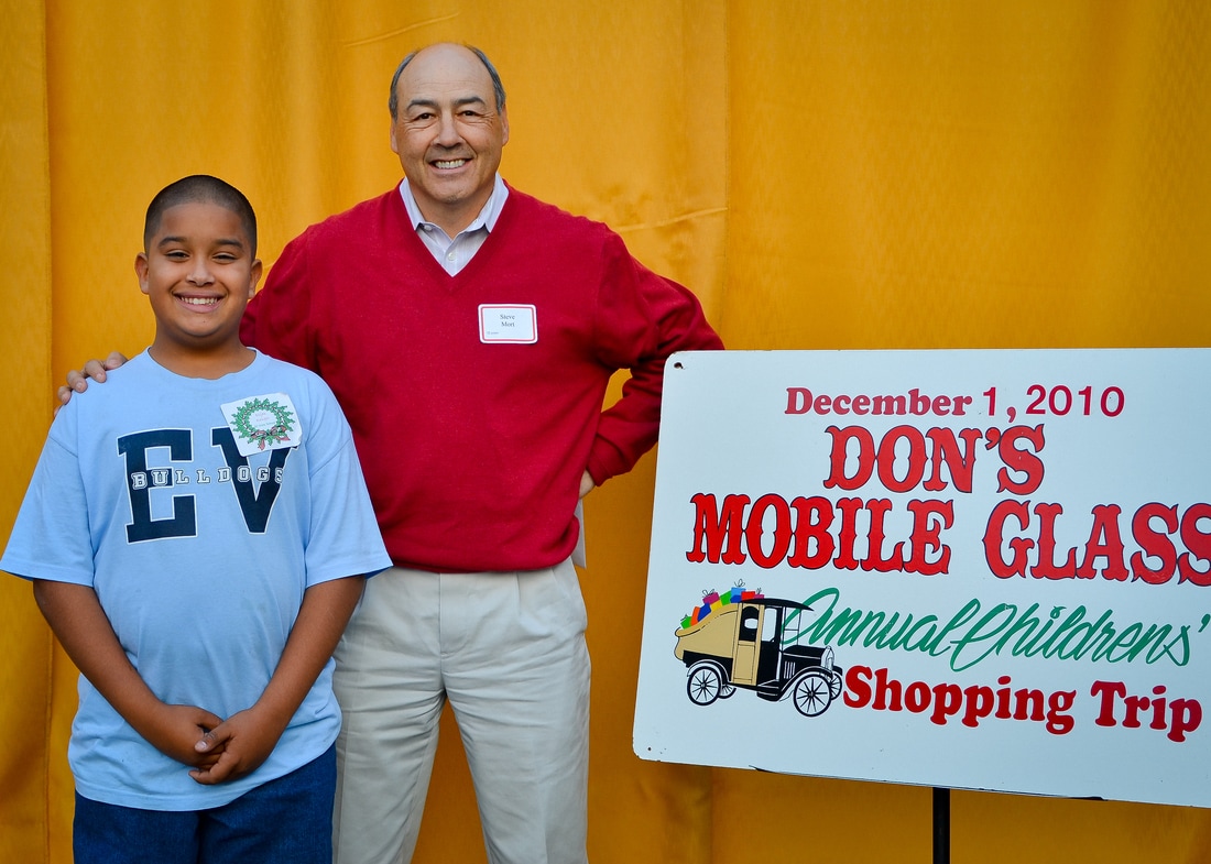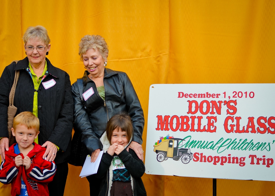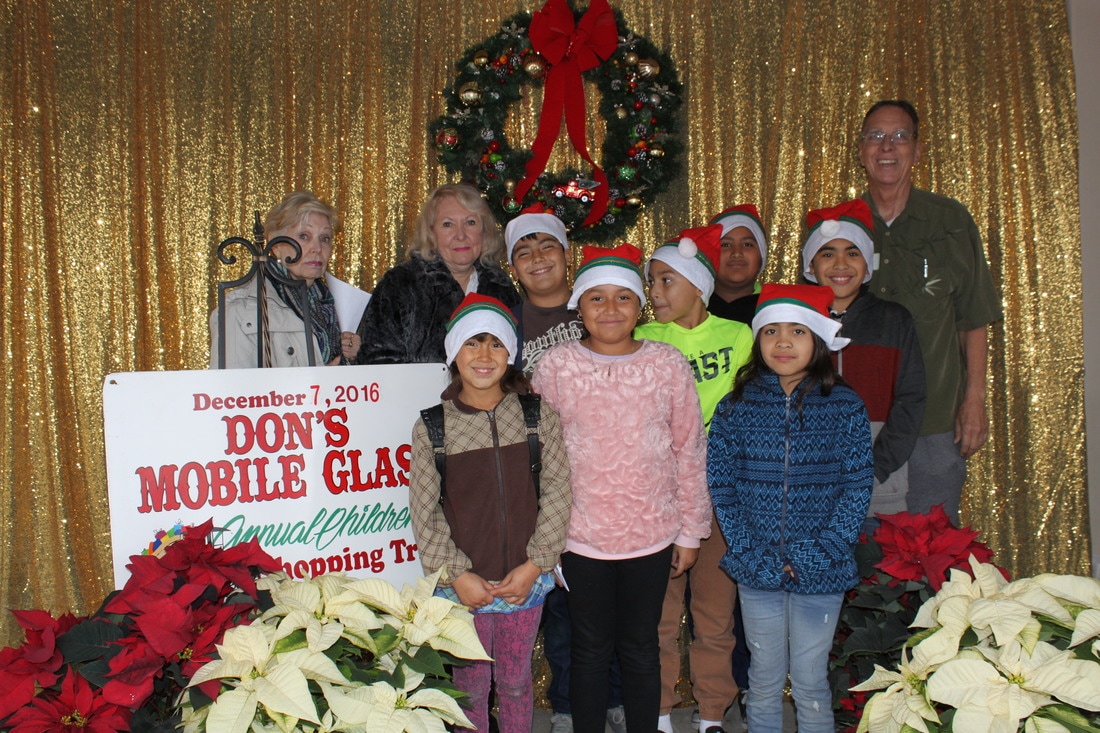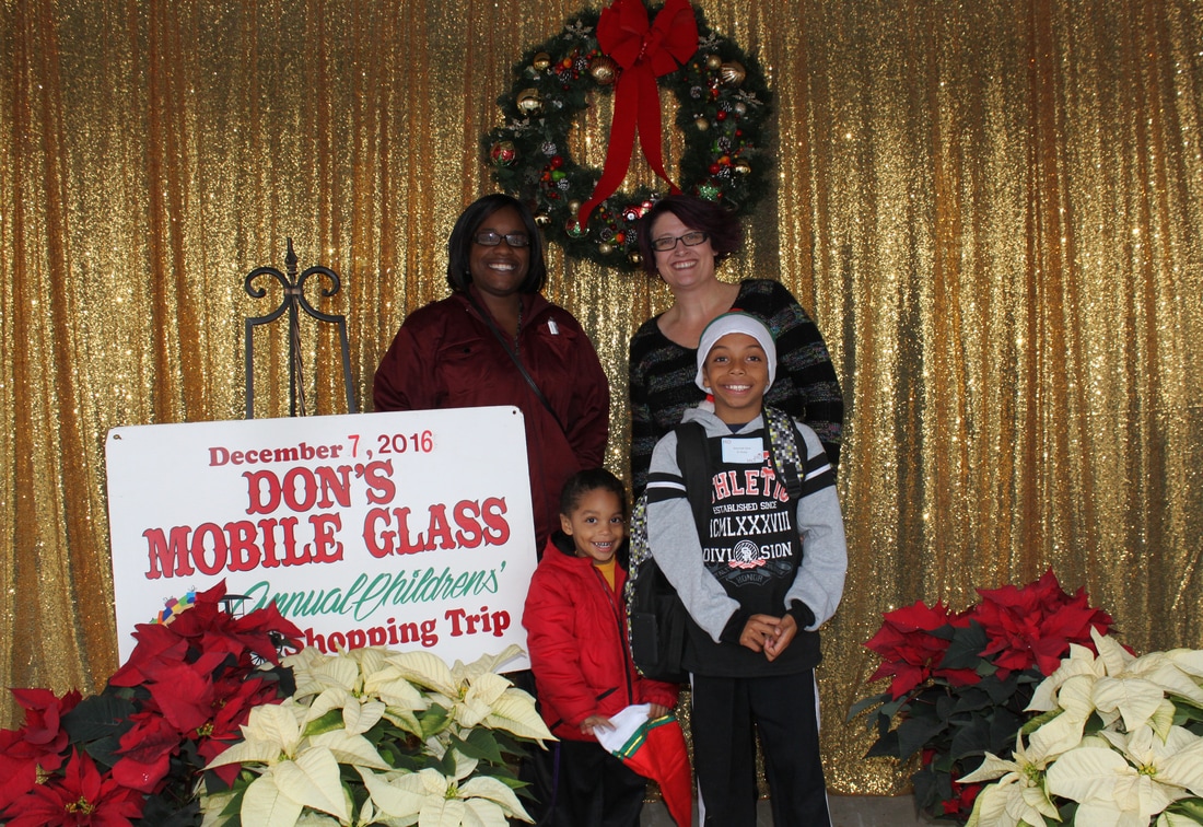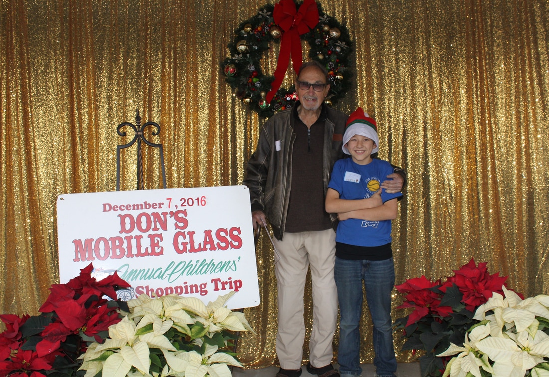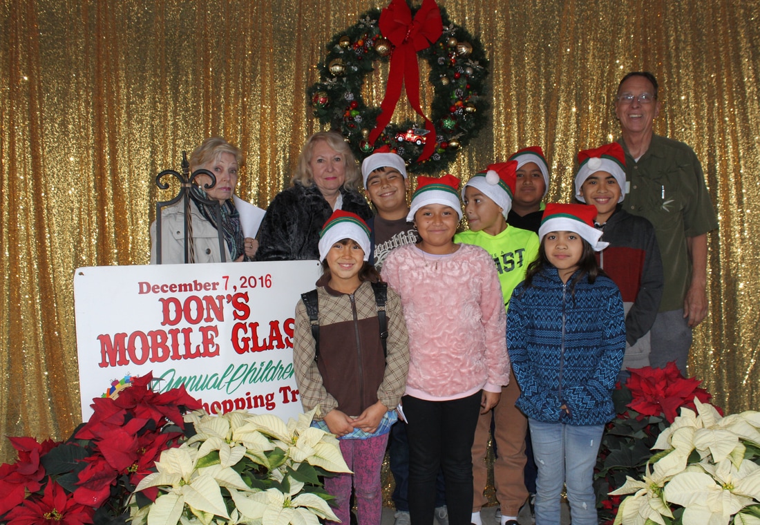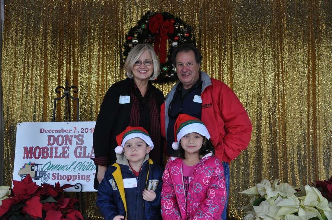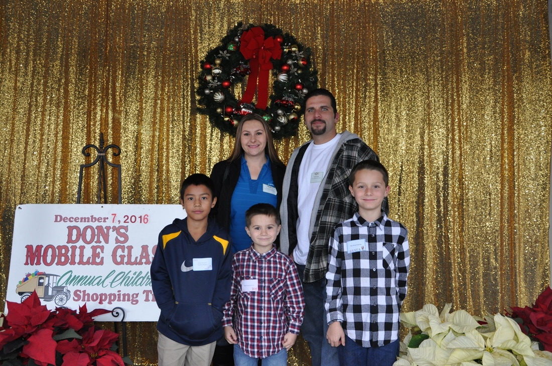 Fast forward a few decades and Thousands of kids have participated in the shopping tour. Don's "elves" at Don's Mobile Glass, as well as other local businesses and friends take deserving children out for an afternoon of holiday shopping; followed by a great group dinner and capped off with a visit from Santa.