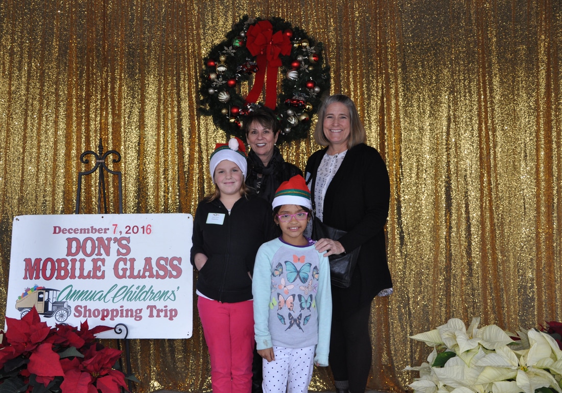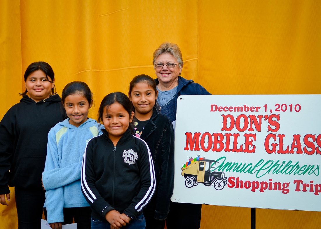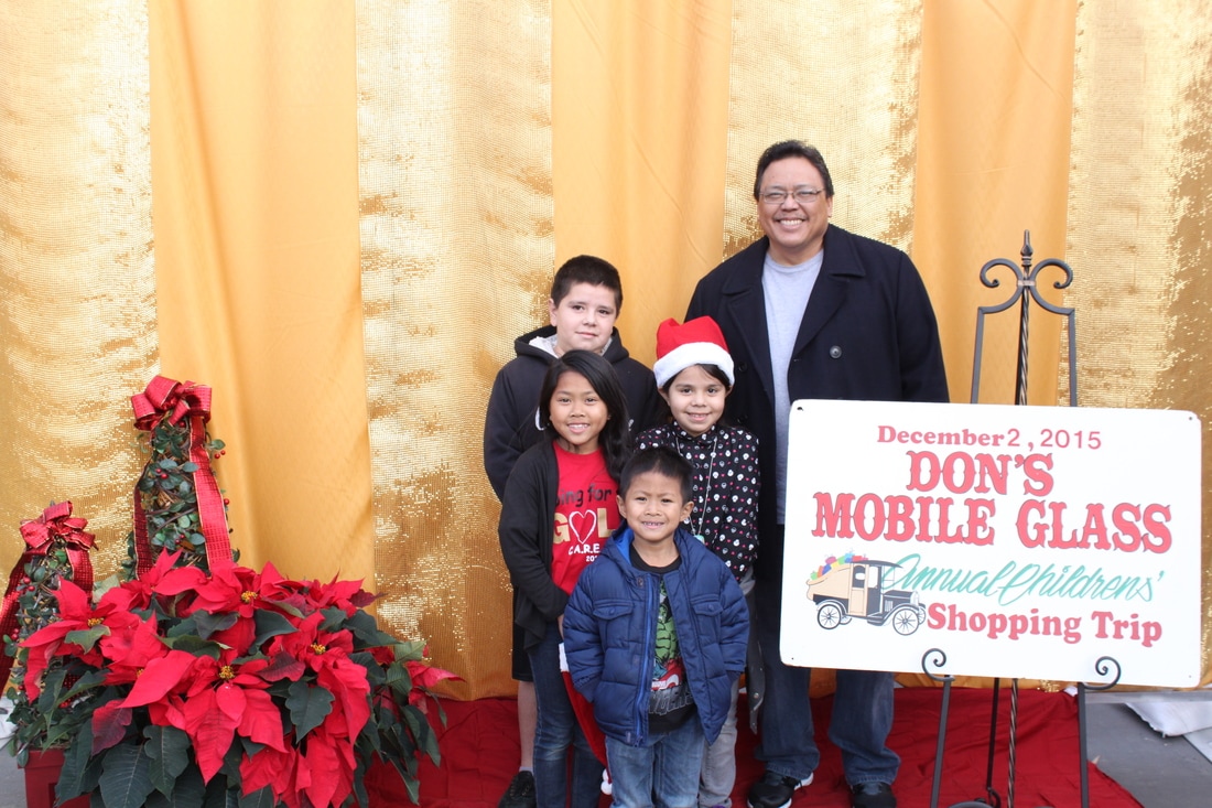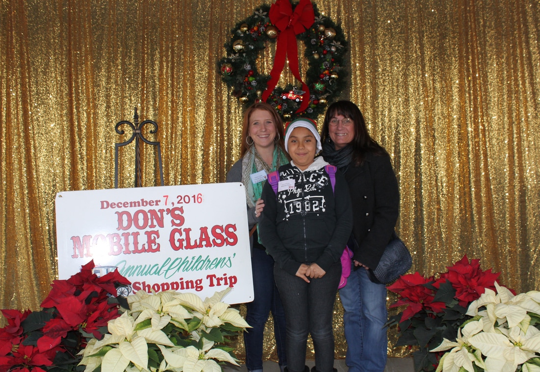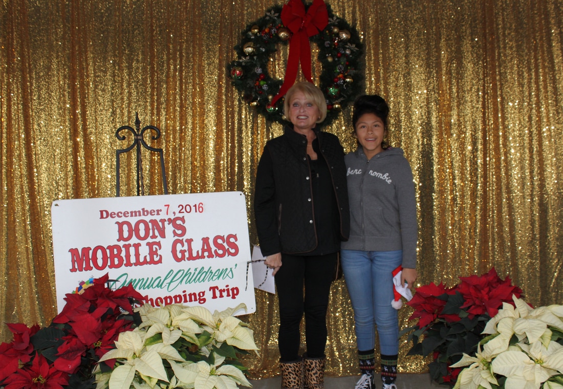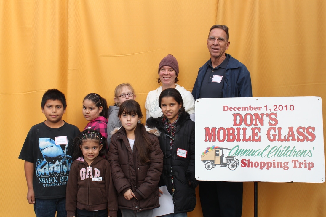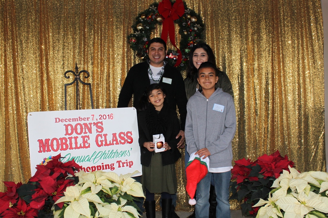 Fast forward a few decades and Thousands of kids have participated in the shopping tour. Don's "elves" at Don's Mobile Glass, as well as other local businesses and friends take deserving children out for an afternoon of holiday shopping; followed by a great group dinner and capped off with a visit from Santa.