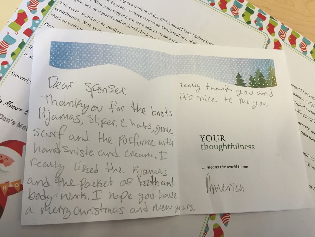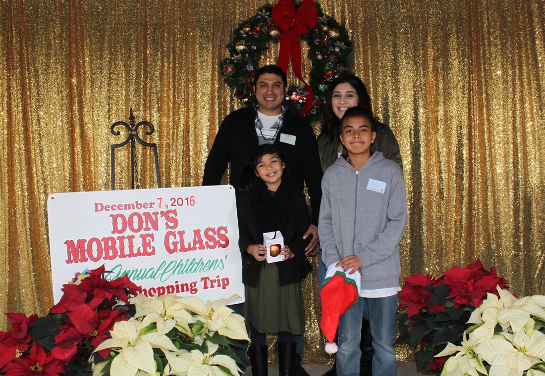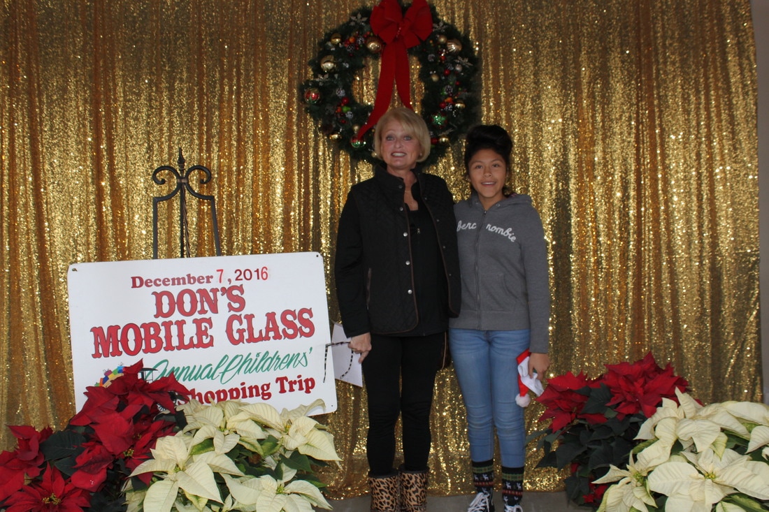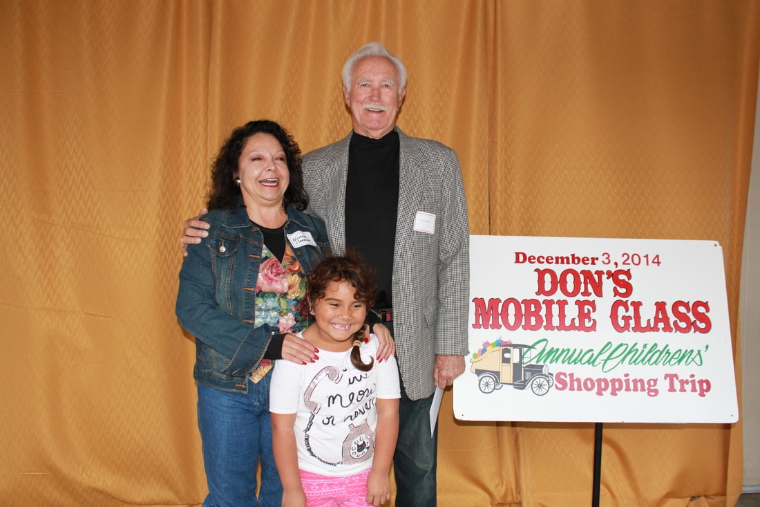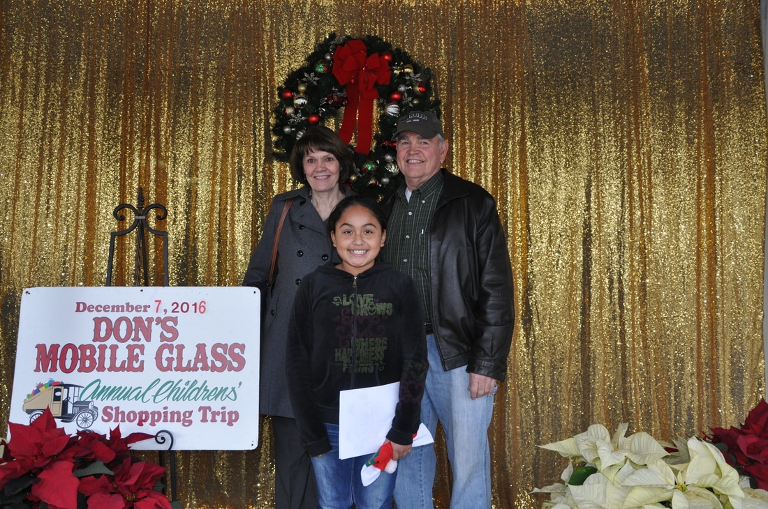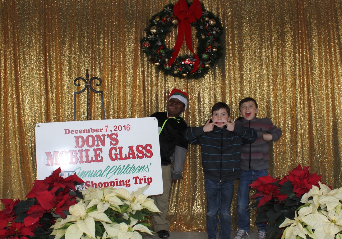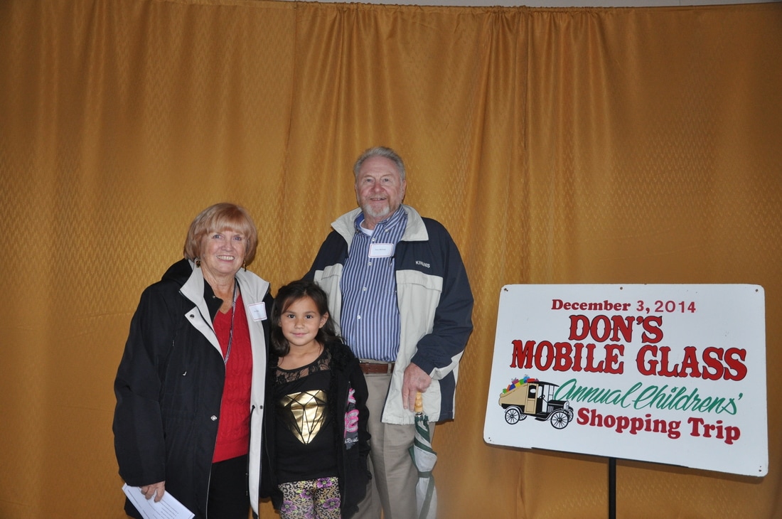 Fast forward a few decades and Thousands of kids have participated in the shopping tour. Don's "elves" at Don's Mobile Glass, as well as other local businesses and friends take deserving children out for an afternoon of holiday shopping; followed by a great group dinner and capped off with a visit from Santa.