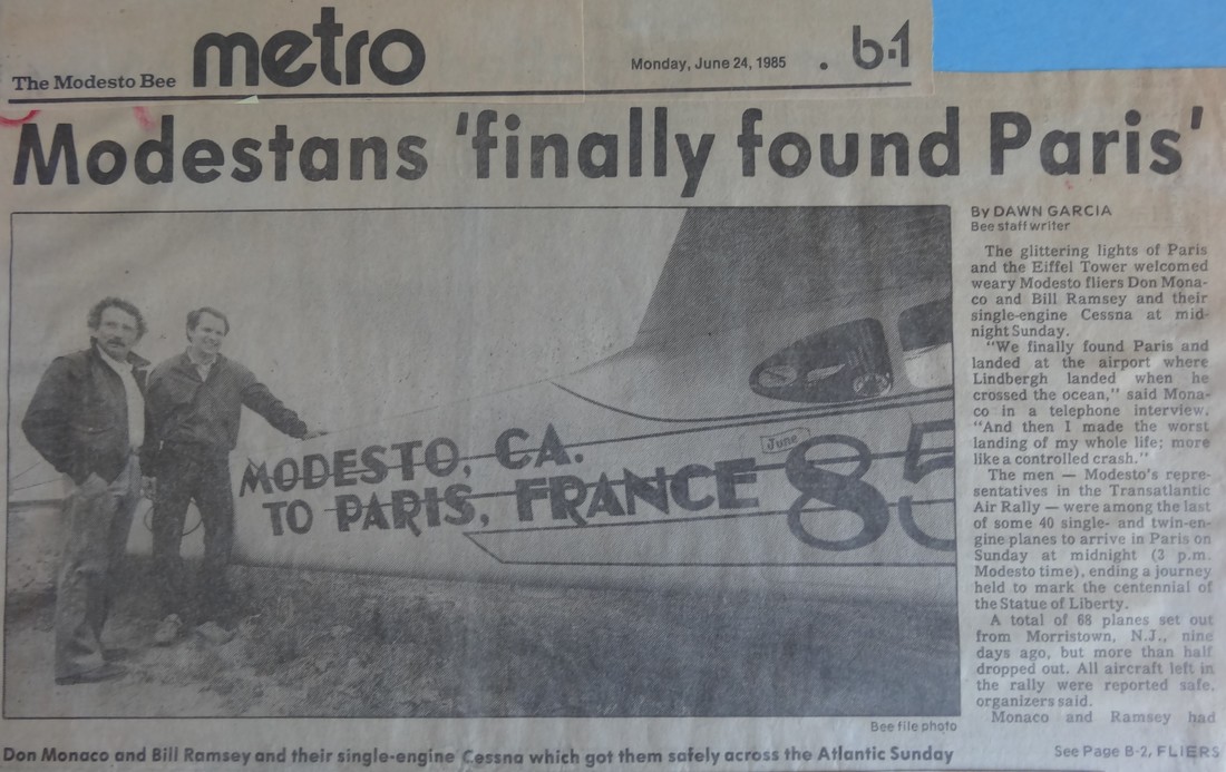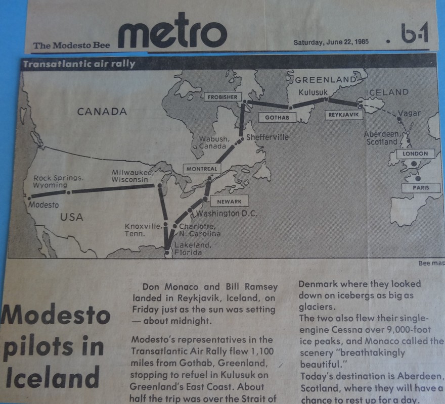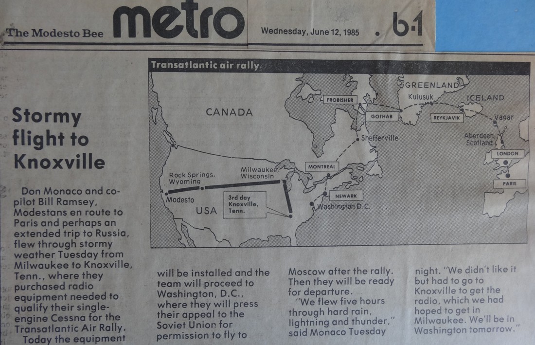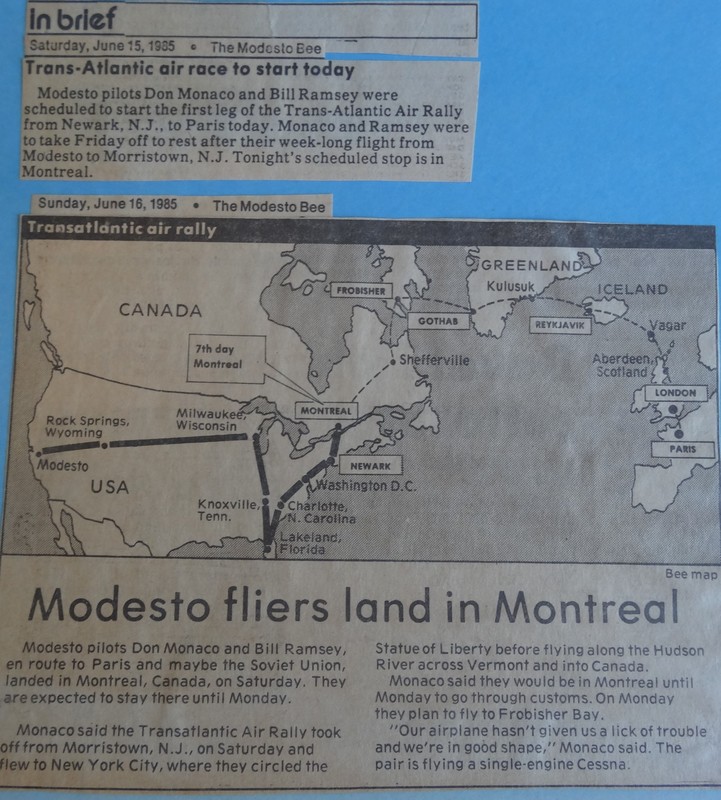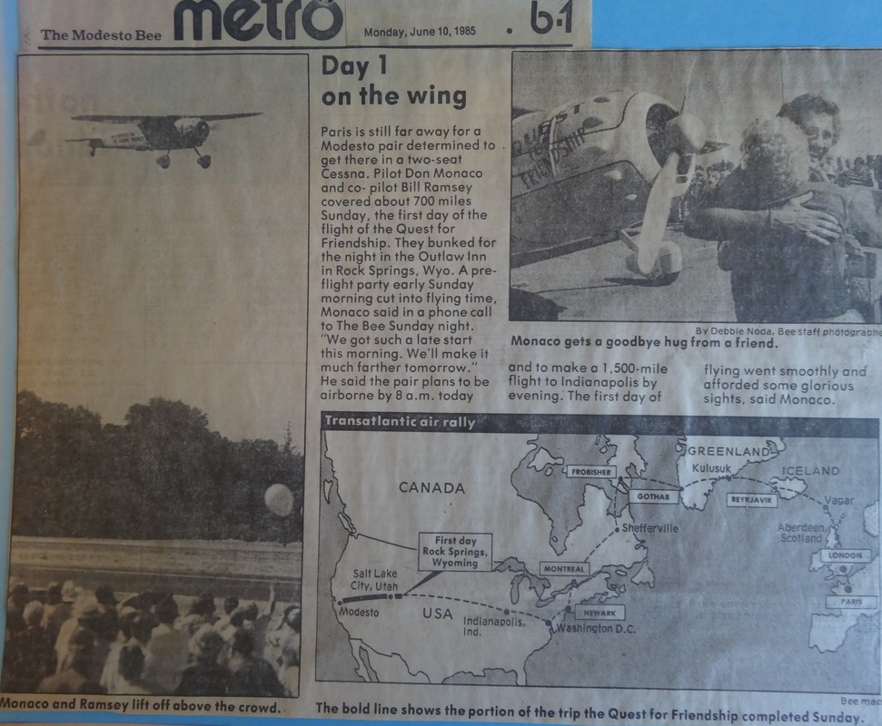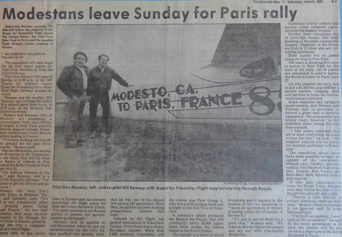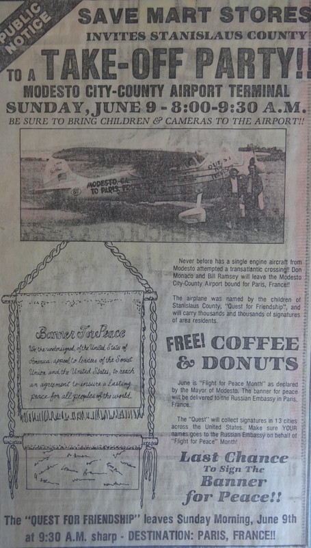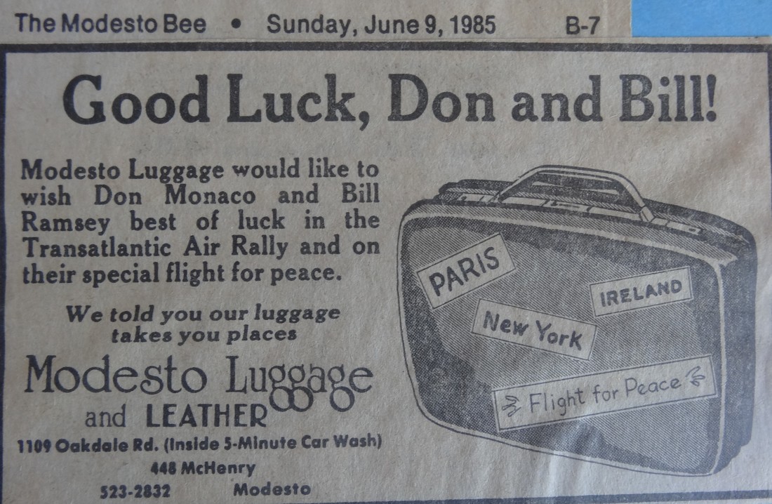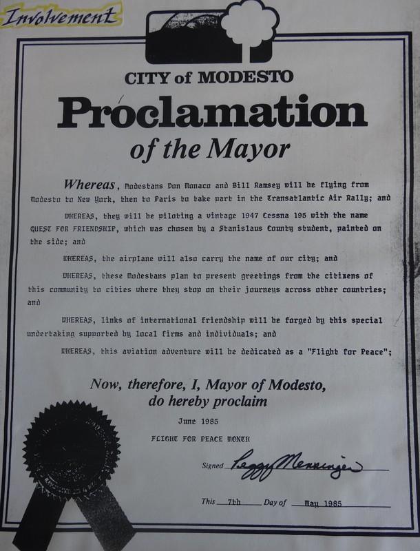 June of 1985 was proclaimed by the Mayor of Modesto to be "Flight for Peace" month because of the trip Don and Bill ventured on.