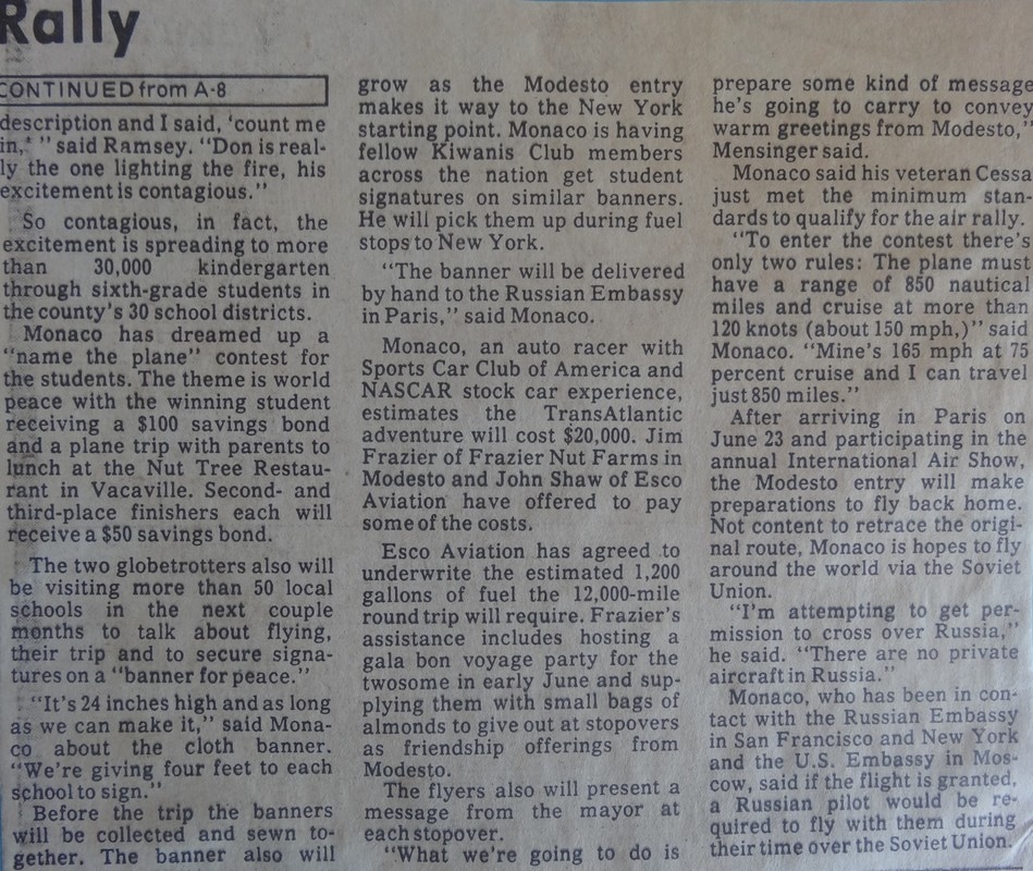 Don has always had an interest in all things mobile and fast; whether on the ground or in the air. In the early 60's, He engineered the fastest skateboard in the world (gas powered) and was often caught riding it around town capturing audiences everywhere he went. He became a race car driver, set land speed records at Bonneville Salt Flats and even raced in a rally across Alaska. In the 80's, he flew around the world from Modesto to Paris and delivered a petition for peace with thousands of signatures to the Russian embassy. Over the years, he has offered free plane rides to contest winners and for special children in the community.